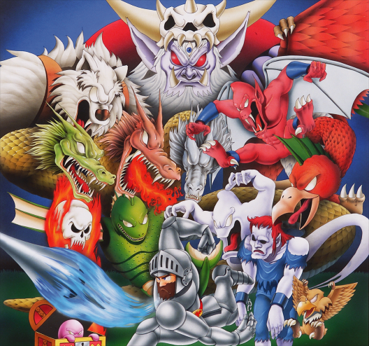 敵のバリエーションが豊富で、遠距離攻撃を使う者や飛行タイプのほか、大型のドラゴンなどが登場。キャラクターには成長要素があり、得点によるレベルアップや、アイテムの取得で能力が上昇。